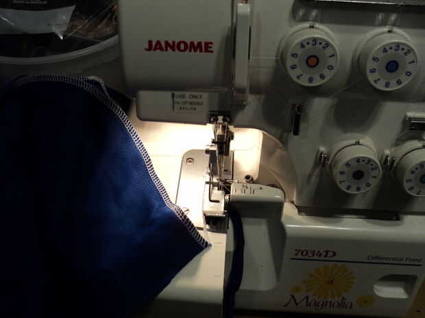Usted puede coser o serge la costura para cerrar la parte superior de la campana. Yo también serged todo el borde todo alrededor para que sea más fácil trabajar con el material. La remalladora hace recorta bordes rectos limpio con no desentrañar.