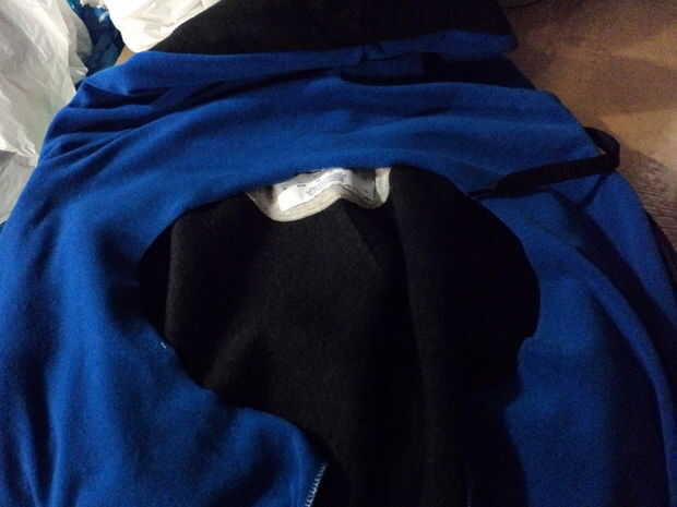 Ahora debe tener una bala en forma de pieza de tela que cubre la sudadera con capucha de apertura.