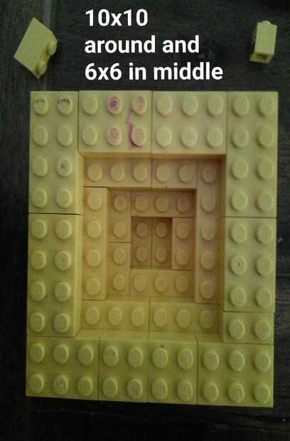 Deben hacer esto una y otra vez hasta llegar a 12 x 12 y tiene un agujero de 8 x 8 en el centro.