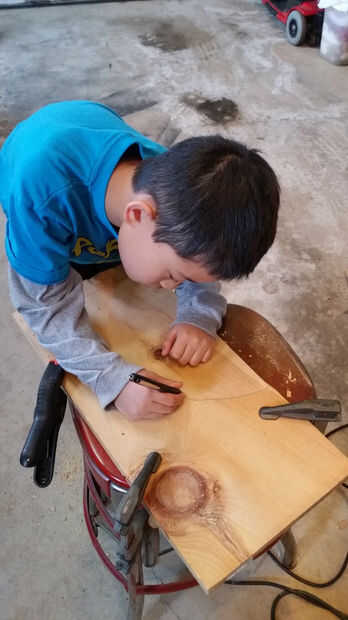 Sujeta la pieza de madera contrachapada a nuestra superficie de trabajo comenzado a cortar.