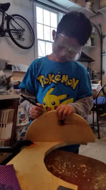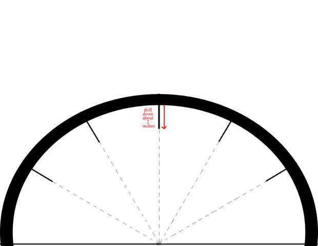 Luego trazar una línea de 2 pulgadas desde el agujero hacia el punto central como en la primera foto. Trata cómo lejos abajo perforar.