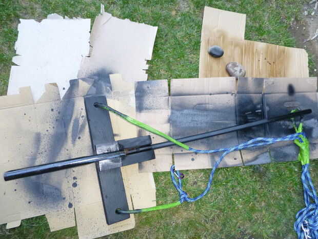 Suponiendo que era simplemente tan impaciente como éramos y ya sacó la escoba para un vuelo de prueba, utilice cinta adhesiva para cubrir completamente las cuerdas por todas partes que puede ser que consiga aerosol pintado como se muestra en la primera foto.
