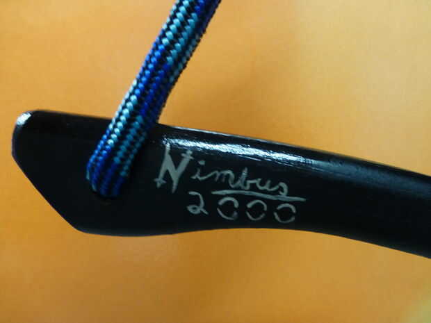 3. Cuando toda la pintura negra es seco, use poco modelo de plata de pintura y una brocha pequeña para agregar un estilo "Nimbus 2000" (u otro apodo pegadizo) en la punta del mango, como se muestra en la segunda foto.