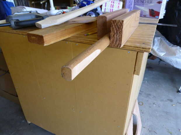 3/4" diámetro de su espiga de eje de cola es probablemente un poco más ancho que el mango del hacha, pero necesita que el mismo ancho por lo que puede emparedado ambos firmemente entre los paneles laterales 2 x 4 de la base.