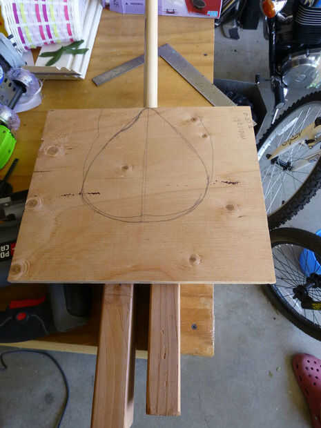 Para calcular el resto de las dimensiones, tuve mi hijo sentarse en el tablero del asiento y trazó un esbozo de su fondo (era aproximadamente 9" en la parte más ancha). Se puede dibujar la forma del asiento a mano como yo hice, o crear una plantilla de papel y dóblalo a través de la línea central para que ambos lados del asiento son perfectamente simétricos.