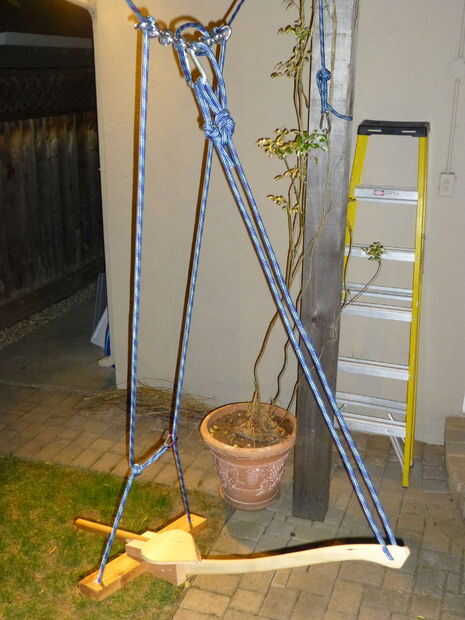 Contamos con una estructura de sombra agradable, altura "pérgola" en el patio que era perfecto para colgar la escoba y la práctica de Quidditch. Suele colgar una hamaca entre dos postes robustos que tengan un miembro cruzado fuerte entre ellos, así que estaba seguro que apoyaría la Nimbus 2000. Si usted tiene un árbol con ramas robustas, el aparato de suspensión que se describe a continuación también funcionará bien con algunas modificaciones específicas de ubicación.