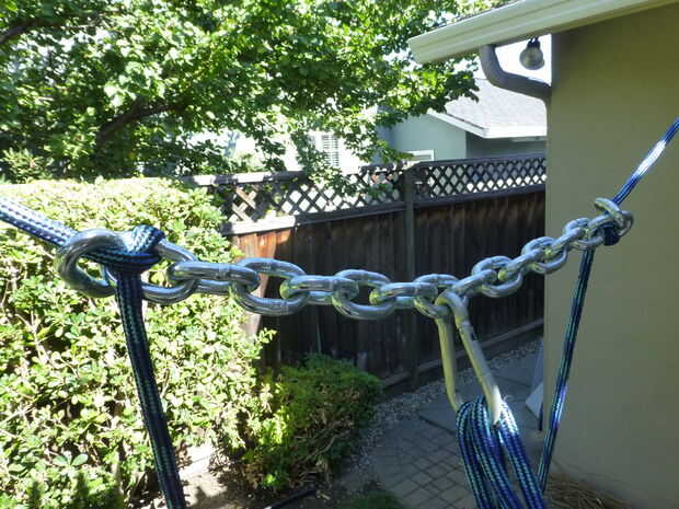 - Bucle de la cuerda por los extremos de la cadena como se muestra en la segunda foto asegura que haya suficiente fricción que la cuerda no desliza.