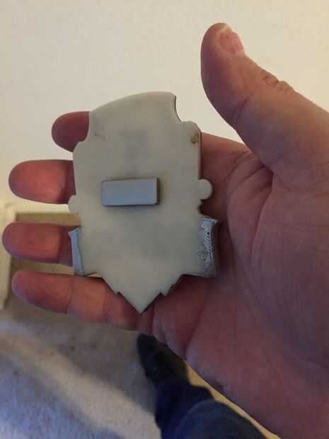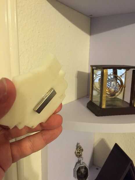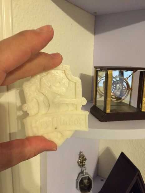 3D imprimí las crestas de Gryffindor, pintado y había pegado un imán de neodimio a la parte posterior. El imán le permite cubrir cualquiera de los tornillos de la pared puse en su lugar y ayuda a cubrir el agujero y el tornillo. He descargado la cresta de Thingiverse encontrado aquí.