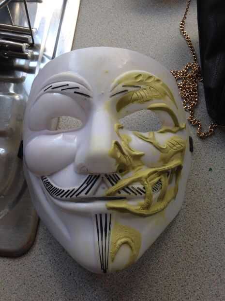 Cómo enfrento pintado V para Vendetta máscara a un Joker caballero oscuro!Paso 1: Blanco Spray Pintura de aerosol del blanco de la máscara.Paso 2: Pintura de la cara La pintura de la cara, he usado algunos sobre pintura había llamado pintura de tela