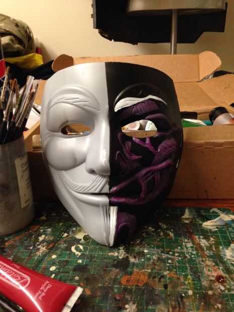 Cómo enfrento pintado V para Vendetta máscara a un Joker caballero oscuro!Paso 1: Blanco Spray Pintura de aerosol del blanco de la máscara.Paso 2: Pintura de la cara La pintura de la cara, he usado algunos sobre pintura había llamado pintura de tela