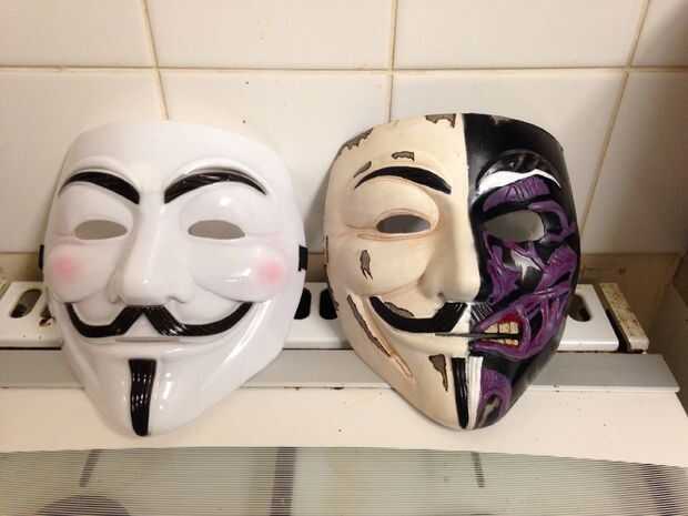 Cómo enfrento pintado V para Vendetta máscara a un Joker caballero oscuro!Paso 1: Blanco Spray Pintura de aerosol del blanco de la máscara.Paso 2: Pintura de la cara La pintura de la cara, he usado algunos sobre pintura había llamado pintura de tela