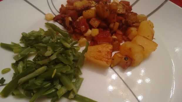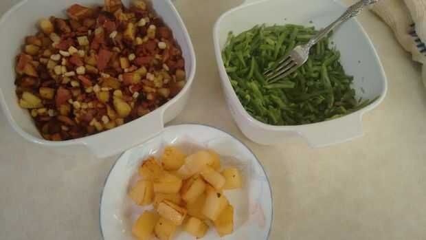 Servir con frijoles verdes, con la piña en el lado y disfrutar de su Hash sobras de jamón!