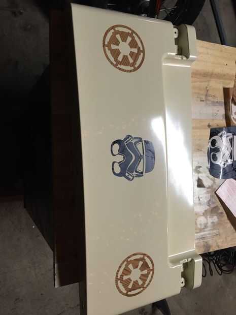 Pintar el cajón frontal con su color de base he utilizado un aerosol color crema para la trooper de la tormenta y las insignias del Imperio.