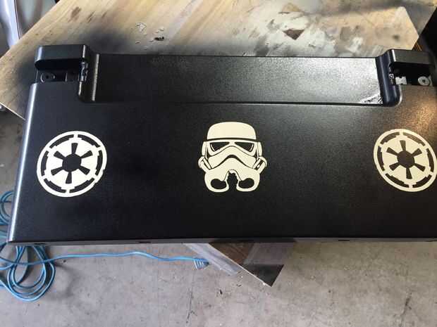 Cuando el frente del cajón está secando cuidadosamente, aplicar las plantillas de etiqueta. Ordené que mina de la gente de https://www.facebook.com/YakimaCoolNerdThings/