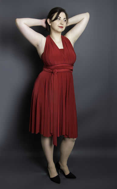 Un vestido infinito es simplemente un vestido que puede ser usado de muchas maneras diferentes. Algunos dicen que puede ser usado en un número infinito de estilos - es como la navaja suiza del guardarropa. Un vestido infinito consiste en una falda, una boobtube/pretina y dos muy largas bufandas que pueden estar vinculados a hacer casi cualquier cuello de línea te imaginas!
