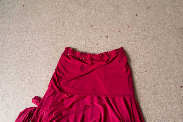 Luego prender su fondo Boobtube (los cantos abiertos, no el doble) a borde mismo que sólo ha cosido. Prender la tonta la forma redonda hasta que con a los bordes. Coser el boobtube a la falda, se puede utilizar allí función de "corte" en tu armario esta vez.