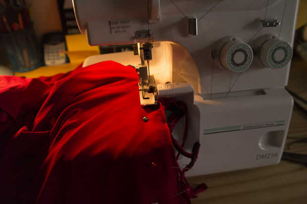 Finalmente, Pin y coser los dos extremos de la boobtube junto en el interior. Asegúrese de que coincidan las dos costuras, por lo que no hay agujeros.