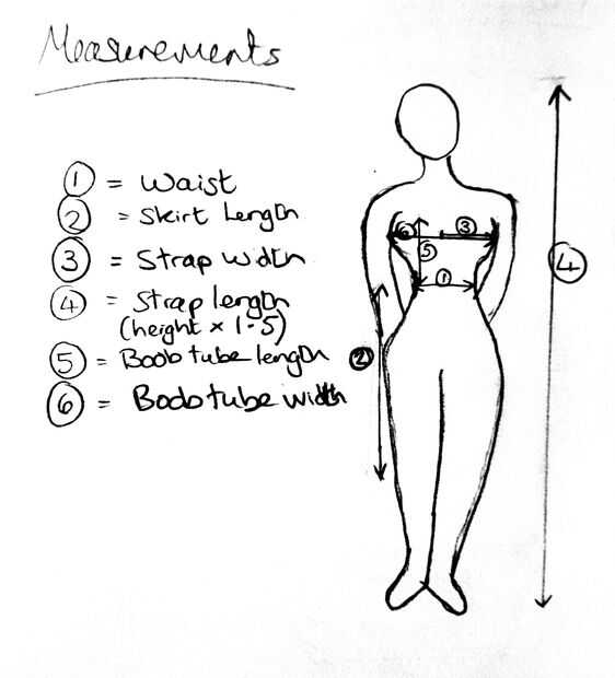6. Boobtube anchura - es su medida de busto. Esto debe ser la medida alrededor de la mayor parte de su busto.