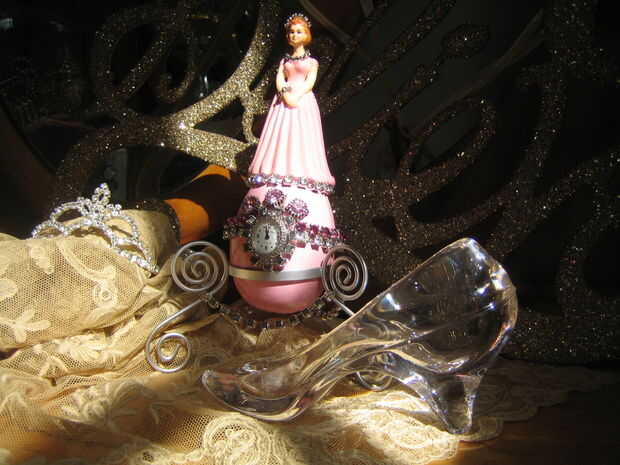 este es mi huevo de cuento de hadas. Yo fui inspirado por mi creencia en la "feliz siempre después" y algunos Cenicienta echado allí. :) Si esto funciona, concedo una presentación de diapositivas. * Todo se recicla, empecé con decoraciones de pastel viejos y viejas jewelry.*