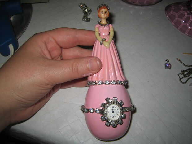 * diamantes de imitación de pegamento alrededor del borde del reloj