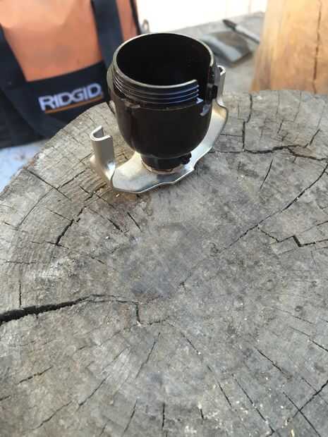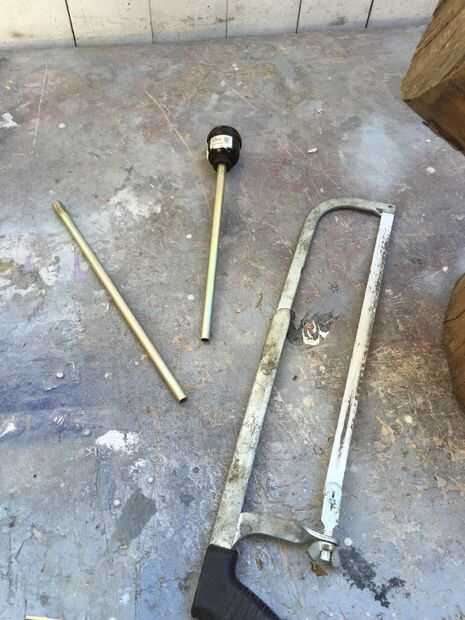 El tubo central que estaba en la lámpara vieja fue cortado por la mitad porque realmente no necesito el tubo entero allí y 5" de él lo dejaría un montón estable una vez que estuvo allí. Mejor parte: el tubo es 3/8" de diámetro y se encuentra muy bien en el agujero perforó.