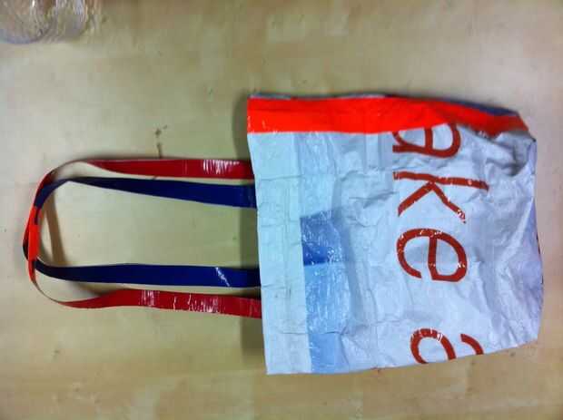 DIY arte vuelva a propósito,-ciclo de una camiseta en una bolsa de supermercado con estilo. Video tutorial al final de este instructivo.