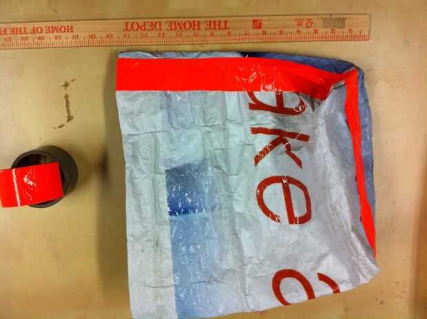 alguien que alimenta a los animales domésticos o aves sabe que las bolsas vacías pueden tomar una cantidad bastante grande de espacio en la bolsa de basura.  Las bolsas tendrá menos espacio si son dobladas y pegadas.MATERIAL NECESARIORollo de cinta d
