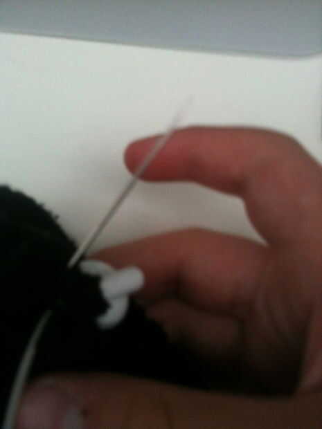 Ahora coser alrededor de los orificios para hacerlos más estrictos para que no caigan los auriculares