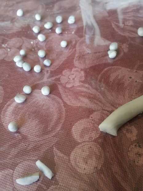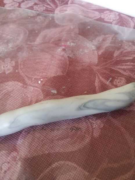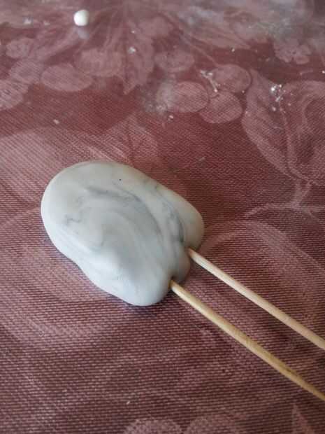 Tomar el resto del fondant marmoleado y rodar en una delgada serpiente. Utilice un cuchillo de cocina y cortar pequeños trocitos. Ahora sólo rodar las piezas en la mano como intentar hacer una bola, pero no. Las rocas son todo tipo de formas y tamaños, ser creativo.