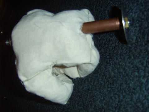 Empuje el tubo de cobre a través de la parte superior de la muñeca de trapo (cuello) a través de la parte inferior del torso. Puede que necesite hacer un alivio de la corte para que el tubo se puede insertar a través de la parte inferior de la muñeca