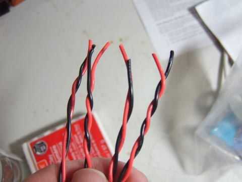 Par uno rojo uno negro cable de alambre y girar juntos. Esto será muy importante cuando el cable de la lámpara a la que se adjuntará a la Arduino protoboard