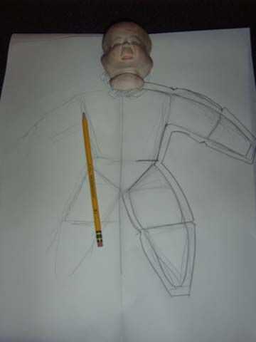 Dibujar un cuerpo para la cabeza trazado, recordando añadir una media pulgada alrededor del cuerpo esbozado, tendrá espacio para coser el frente y traseras de la muñeca.