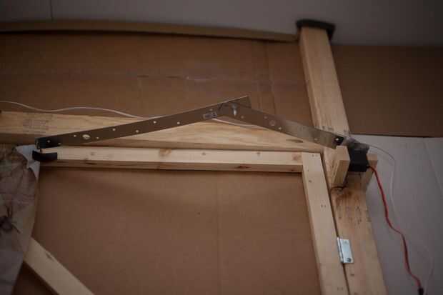 Como puede verse en la foto, dos piezas pequeñas de aluminio se unieron con un tornillo de máquina. En el marco de la puerta que es el brazo es sostenido por un gancho que encontré en mi caja de proyecto. En el otro extremo es un servo estándar, atornillado en el marco de la puerta. Los cuernos de servo que viene con el servo son demasiado pequeños para ser conectado directamente al brazo.
