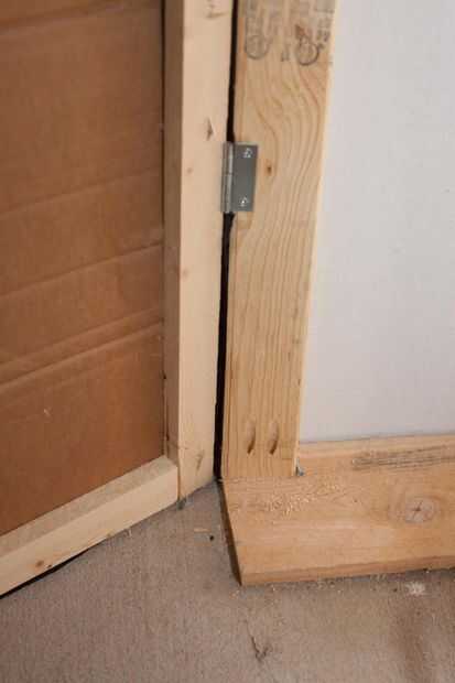 La plantilla Kreg jig y tornillos en particular hecho pernos Unión rápidos, fácil y confiables. Ahora con la rotura comercial fuera de la parte posteriora de la manera a la puerta: cuelga con dos bisagras pequeñas y luego añade la cabecera de la puerta en la parte superior para que quede el marco de la puerta. El objetivo es minimizar las fugas de luz que darían a la puerta secreta. No hay ningún pestillo de la puerta!