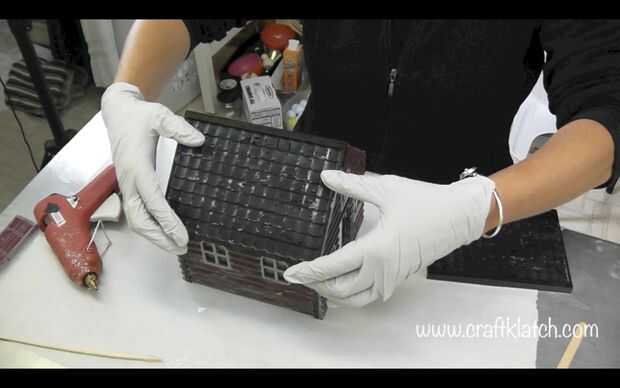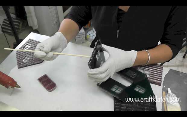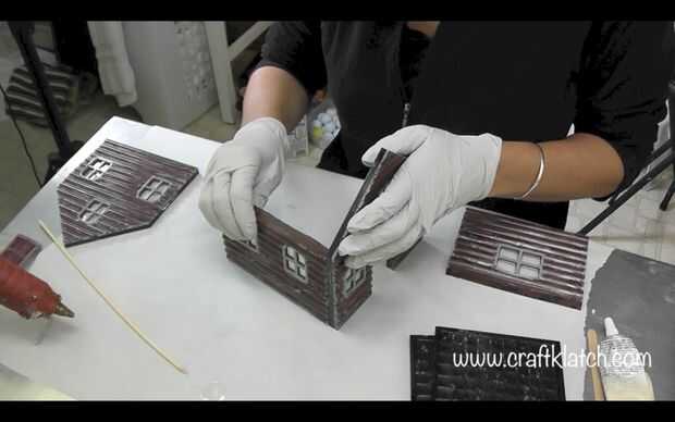 Una vez curado, puede quitar del molde y es tiempo de ponerlos juntos. Utilicé una combinación de pegamento E6000 y pegamento caliente. Apliqué el E6000 para los extremos de las paredes y luego ponerlos juntos (ver video arriba). El E6000 toma tiempo para curar completamente y se pegan, así que corrí una gota de pegamento caliente en el interior de las esquinas de conexión, por lo que el pegamento caliente sostenga en su lugar, mientras que el E6000 termine de secar. Hice lo mismo con los paneles de techo.