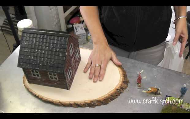 La casa se no conectada a la base de tilo porque quiero poder recogerla y poner una luz de té o algo dentro de ella, a la luz hacia arriba. La siguiente cosa a hacer es encontrar la ubicación de la base y marque una línea alrededor de él. Perforaciones en la base donde desea agregar selecciones para ajardinar.