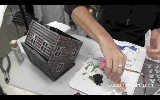 Ahora es el momento para iniciar la decoración real. Hice borrón de transferencia de pintura roja y spray para que se vea como frotis y sangre spray, en el interior de las ventanas. Cuando que seca, diluido la pintura gris clara y pintado que en el interior de las ventanas, así lucen sucias y así no se puede ver el interior (no va por dentro).