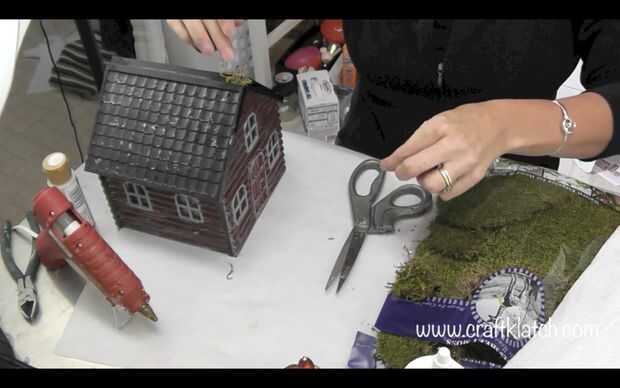 Añadir musgo... un montón de musgo. He añadido el musgo a la estructura de la casa. A lo largo de la azotea, las esquinas y la parte inferior. He añadido pequeñas calabazas que cortan de selecciones florales. He añadido dos arañas de plástico para el techo. La puerta tiene una pegatina de calavera. Añadí musgo al techo y bolas de plástico del cráneo en la parte superior. Añadí musgo en varios lugares alrededor del patio, para tapar el pegamento caliente por la cerca, alrededor de las lápidas. Agregar todo lo que usted puede encontrar o creo que sería apropiado o divertidas! Debe tener su toque personal, si los colores de la pintura o los accesorios!