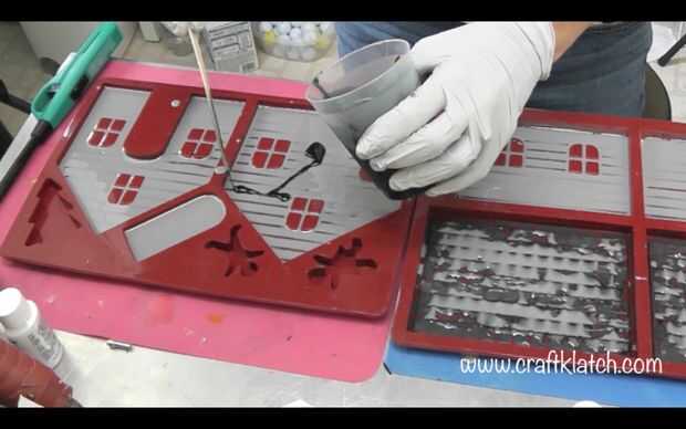 Vierta en el molde - una vez más tener cuidado con las ventanas. Desea vierta muy lentamente y ayudar a moverse con su varilla de mezclar. Verter el resto en el molde de la cubierta. Permita que para curar.