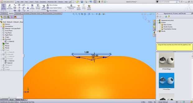 a continuación creé las ranuras de la calabaza.  Luego de experimentar un poco con cómo yo quería a ver, he creado un boceto que intersectan la calabaza y había barrido a lo largo de la cara.  Luego usé la función de patrón circular para hacer estas van alrededor de la calabaza.
