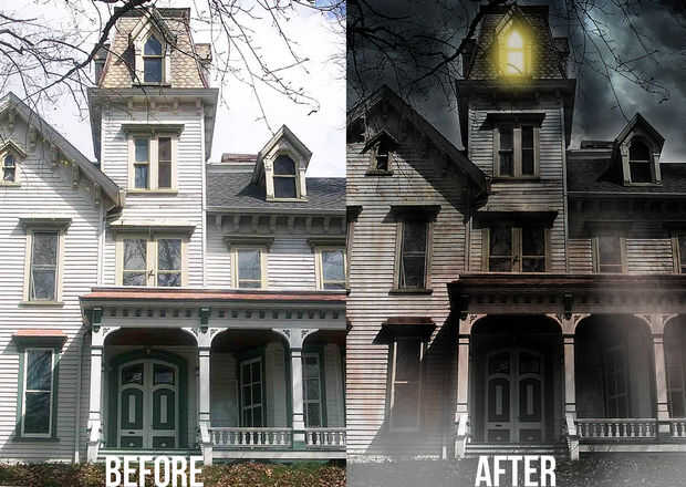 este instructable le mostrará cómo hacer que su casa o en cualquier casa, parezca una casa embrujada. Basado la estética de la casa embrujada en la cultura popular, con un cielo tormentoso, áspero perspectiva, sombras, niebla y colores desaturados para crear una imagen inolvidable, mientras intentan mantener el realismo de la fotografía.