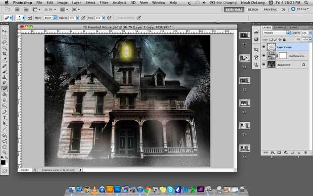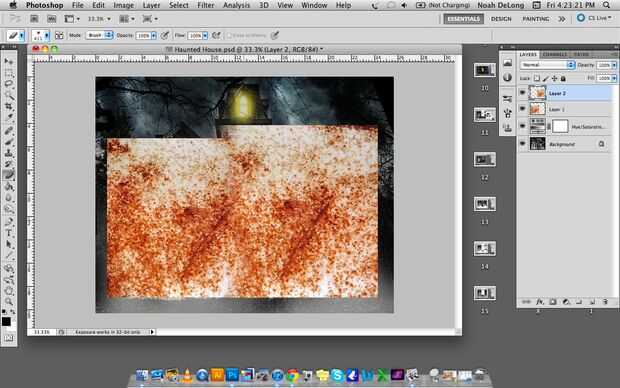 1. cubierta exterior entero de la casa con su textura y establezca el modo de fusión a "Multiplicar".