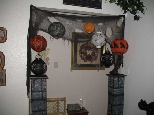 Este es el proceso paso a paso que utiliza para diseñar, construir y mostrar mis pilares de Halloween casa embrujada. Había hecha la estructura de la espuma del aislamiento de 1/2" y cubiertas exteriores con envoltura de plástico de ladrillo escena Setter. Luego tope las tapas con más espuma del aislamiento, que pintado de nuevo.