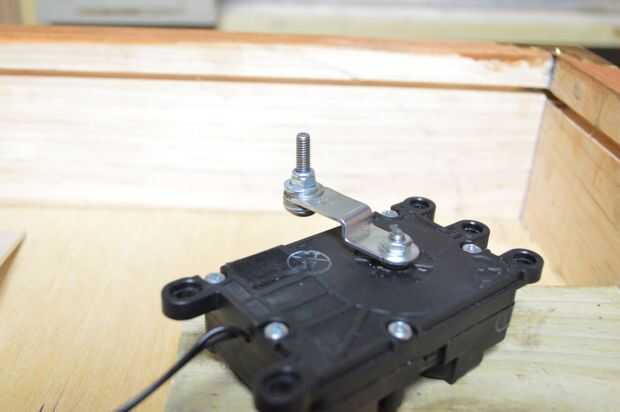5. una vez que el pegamento se ha secado en las piezas de madera entonces puede comenzar a colocar el motor. Monte en la madera con unos tornillos. Si usted necesita levantar el motor uso algunas arandelas