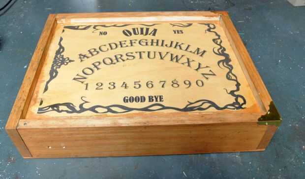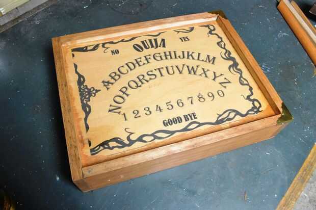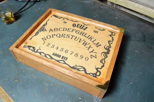 esta animación "embrujada" Ouija board se hizo como un accesorio de Halloween. Esto fue hecha con materiales principalmente de basura de mi garaje, pero si no tienes ninguna de las partes debería poder les fuente razonablemente barato lo suficie