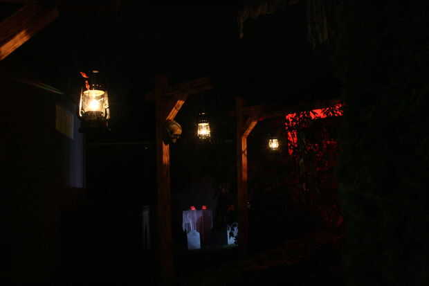 Para esta versión, estamos utilizando 4x4x8s, ganchos de la carne, ferrocarril modificado estilo faroles, diversos esto y que y un sistema de cableado de baja tensión existente.