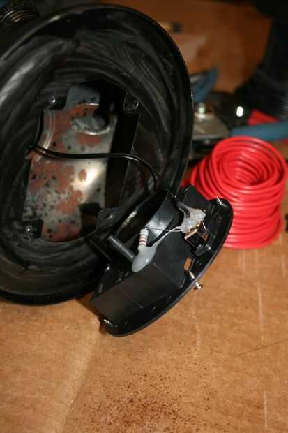 Quité todo de la electrónica original de las lámparas y reemplazado con mi propia que apoyaría a 12vAC. Lo único que mantuvo fue su interruptor así que pude girar en su propia, y los contactos de la batería ya era demasiado trabajan para quitar. ASEGÚRESE DE DESCONECTAR COMPLETAMENTE LOS CONTACTOS SI LOS DEJA EN! No quiero conseguir accidentalmente las baterías allí y luego conectarlo todo a una fuente de 12v.