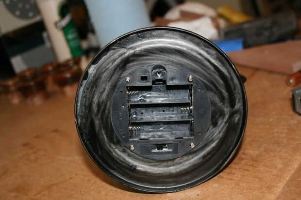 Si utiliza las mismas piezas que hice, usted necesitará ampliar el agujero de la base de la lámpara quepa correctamente ya que es un poco más grande que el que la lámpara estaba usando originalmente.