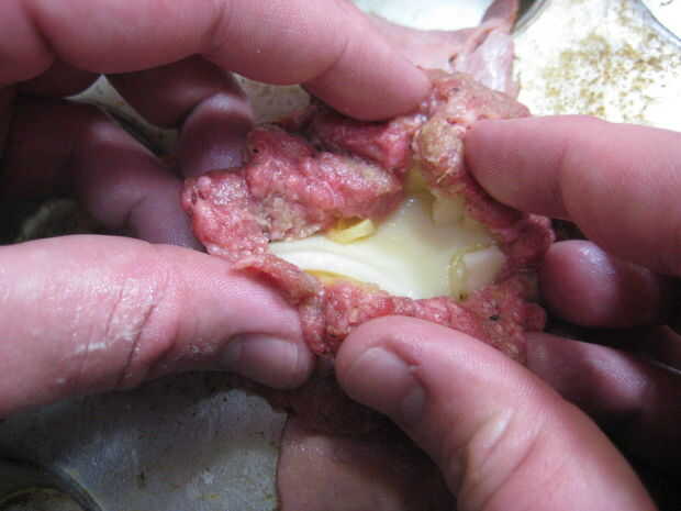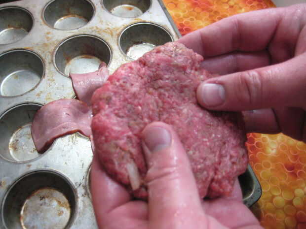 5. hacer una empanada con una cantidad "tamaño de la bola de golf" de carne.