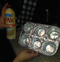 Precalentar el horno a 400 grados. Luego retire la olla del panecillo y recubrir el interior con el aerosol de cocina antiadherente. Apartar la cacerola del mollete.